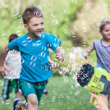 Todos los niños van a correr hacia él gritando "¡yo también quiero!" mientras dispara burbujas sin parar.