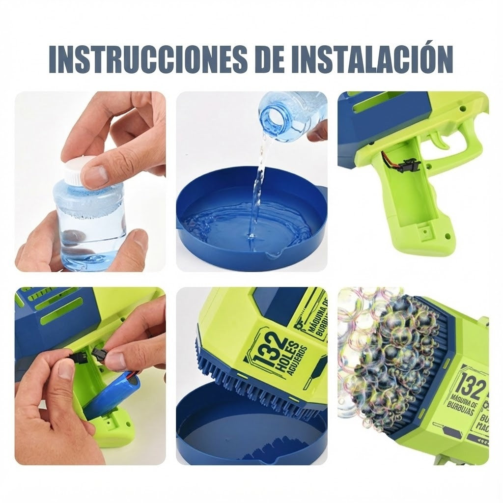 🕹️ ¿Cómo Tira Burbujas? Sumerge la punta, aprieta el gatillo. ¡Boom! 132 huecos = Tormenta instantánea.
