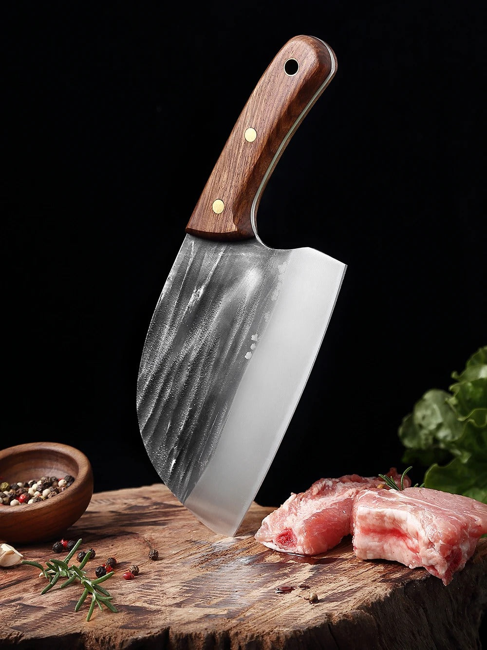 Atraviesa costillas y vegetales duros en un solo movimiento.