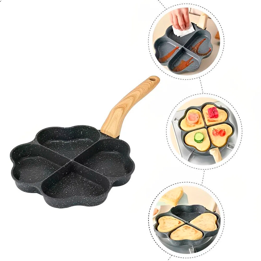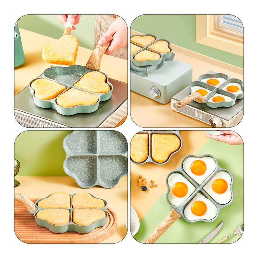 Esta sartén no es solo estética, también es práctica. Con cuatro espacios en forma de corazón, podrás cocinar múltiples ingredientes al mismo tiempo, ahorrando tiempo y energía. Perfecta para desayunos especiales o cenas románticas en casa. ¡La versatilidad que necesitas!